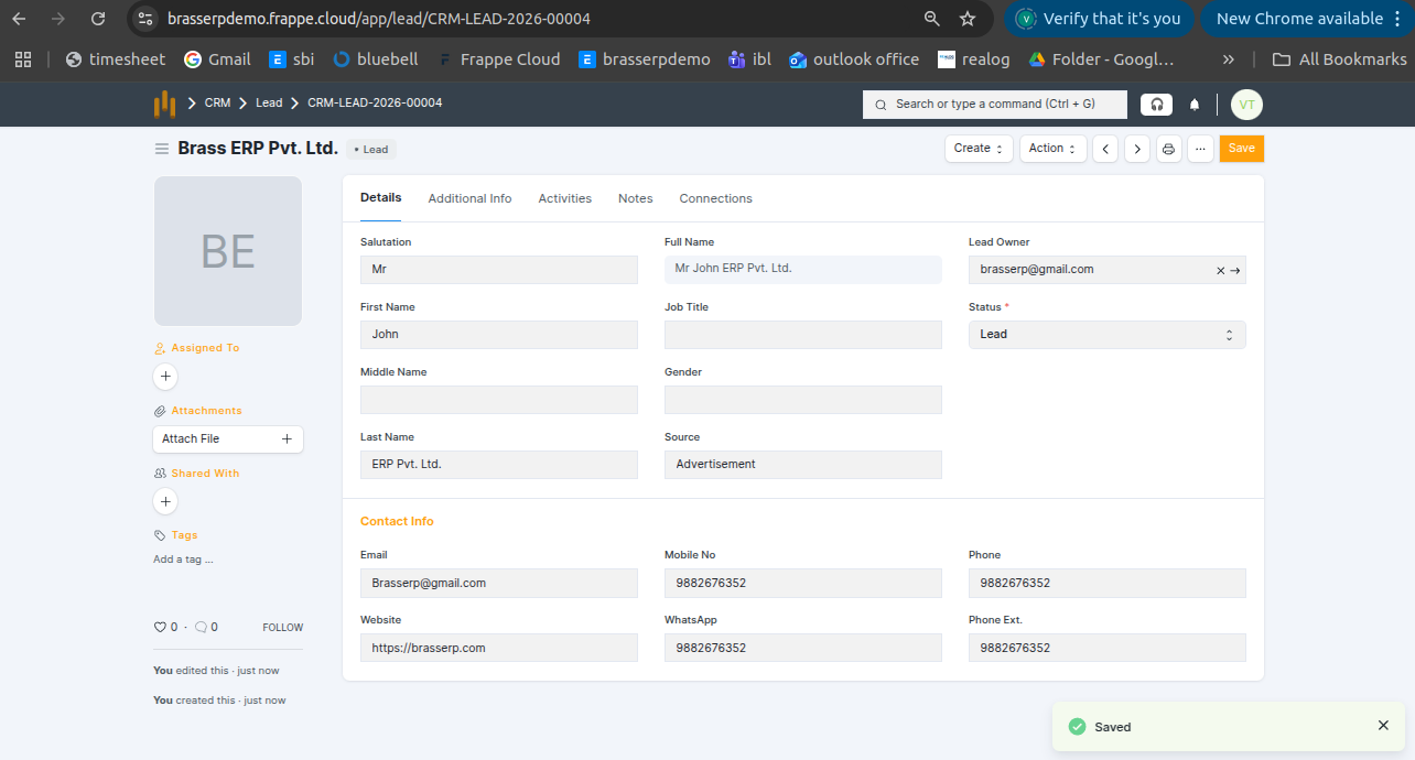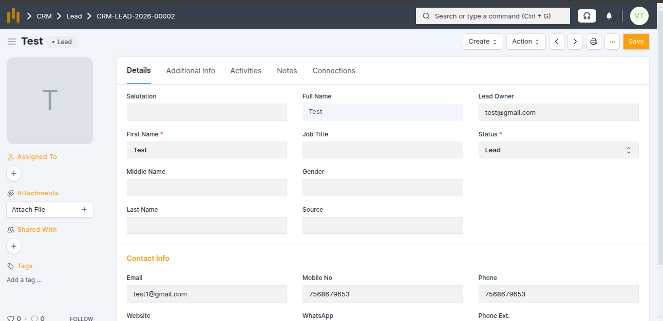 Below are the important fields in the Lead form. Users should ensure these fields are filled correctly for effective lead management.