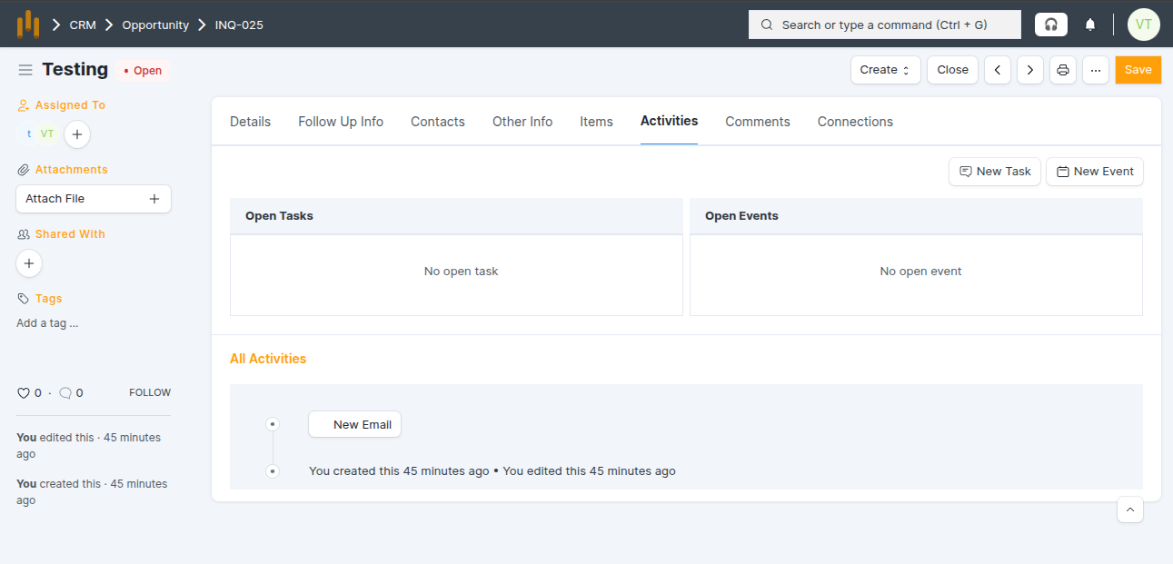 Activities in Lead (Tasks and Events)