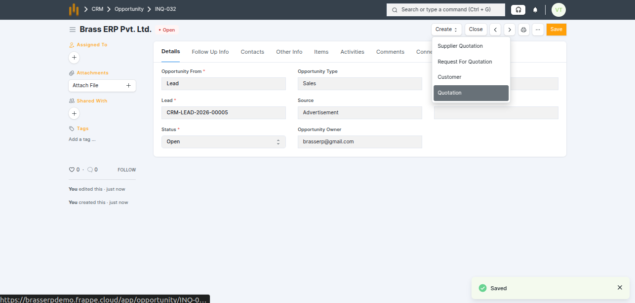 - Customer or Lead details