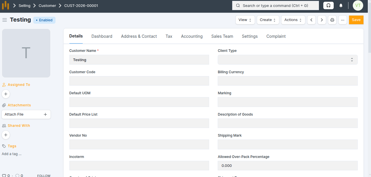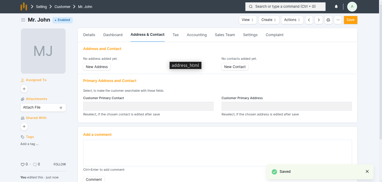 Customer Address & Contact