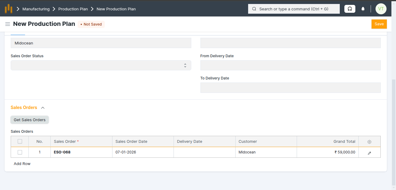 - Click Get Sales Orders Button to add the sales order details.