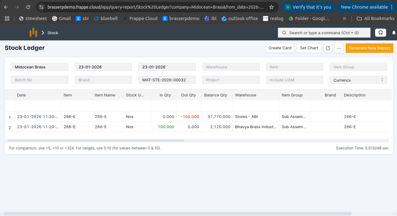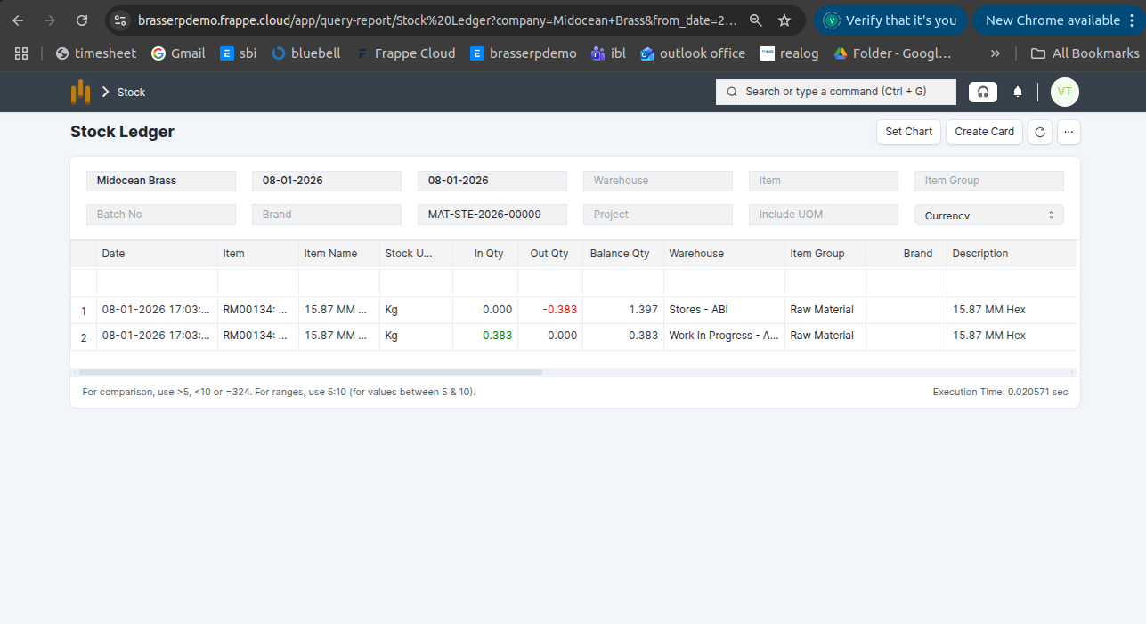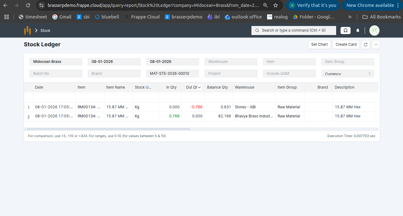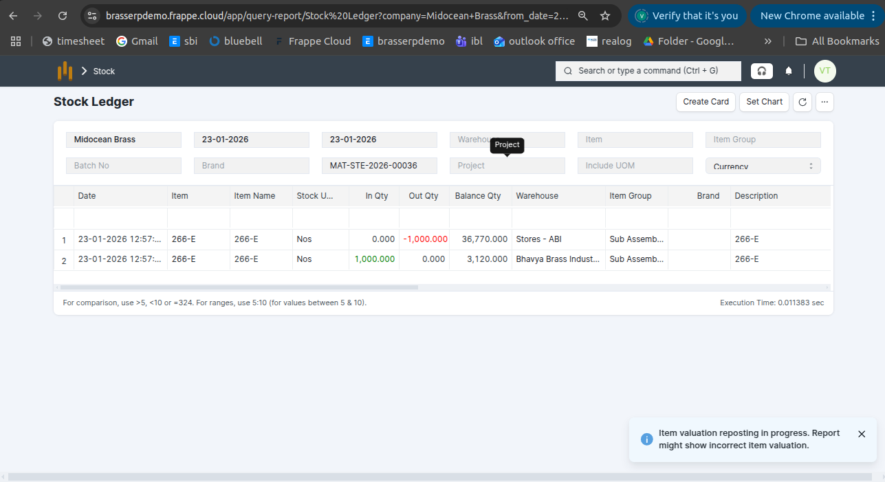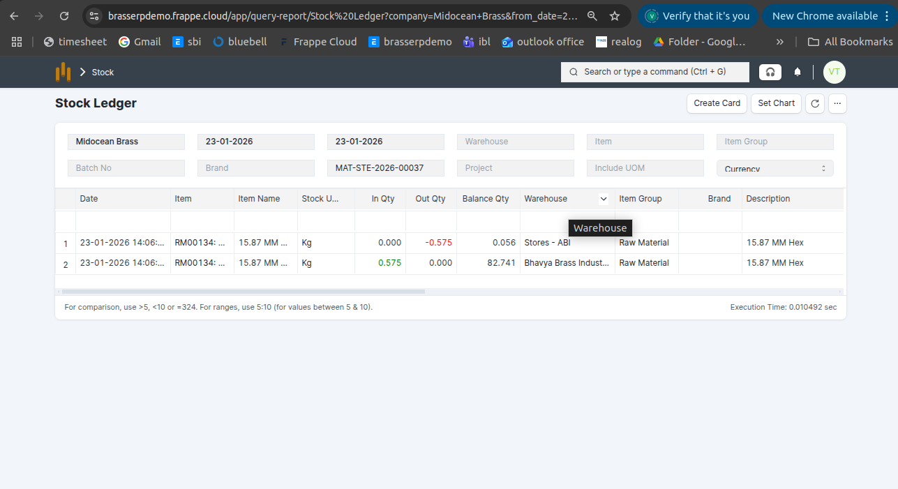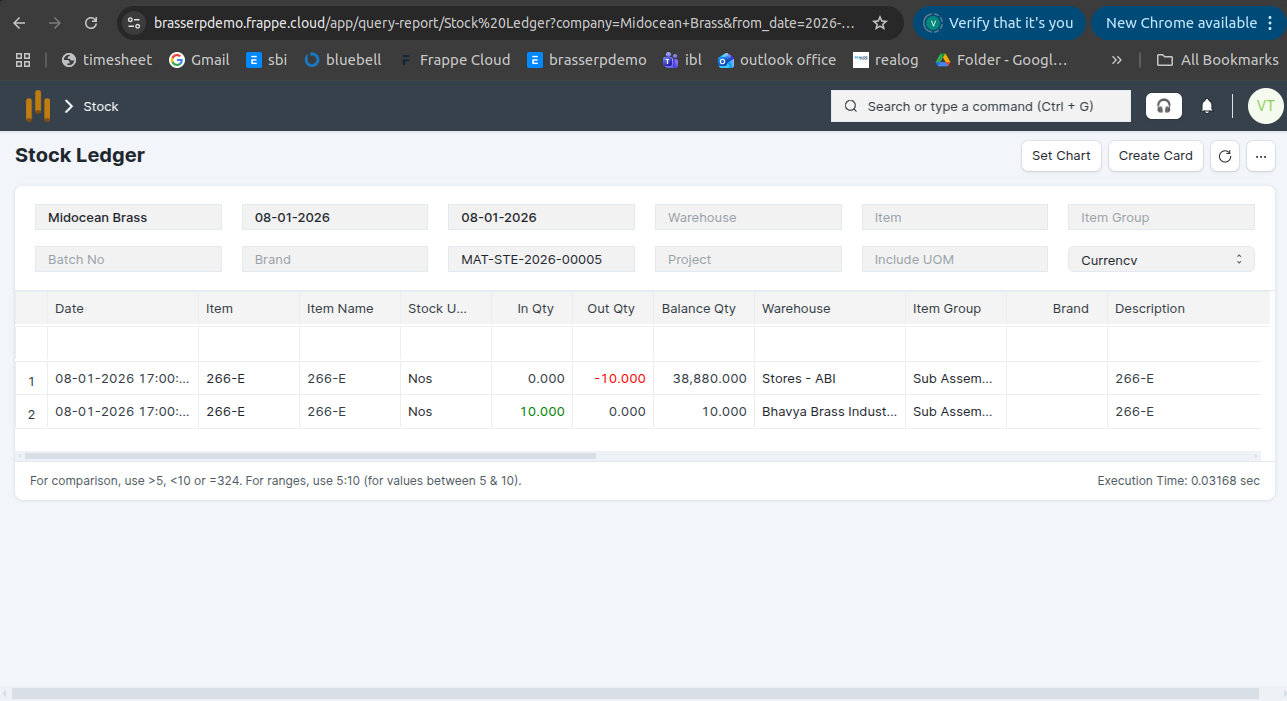 Step-7 : The stock is updated accordingly in the Stock Ledger.