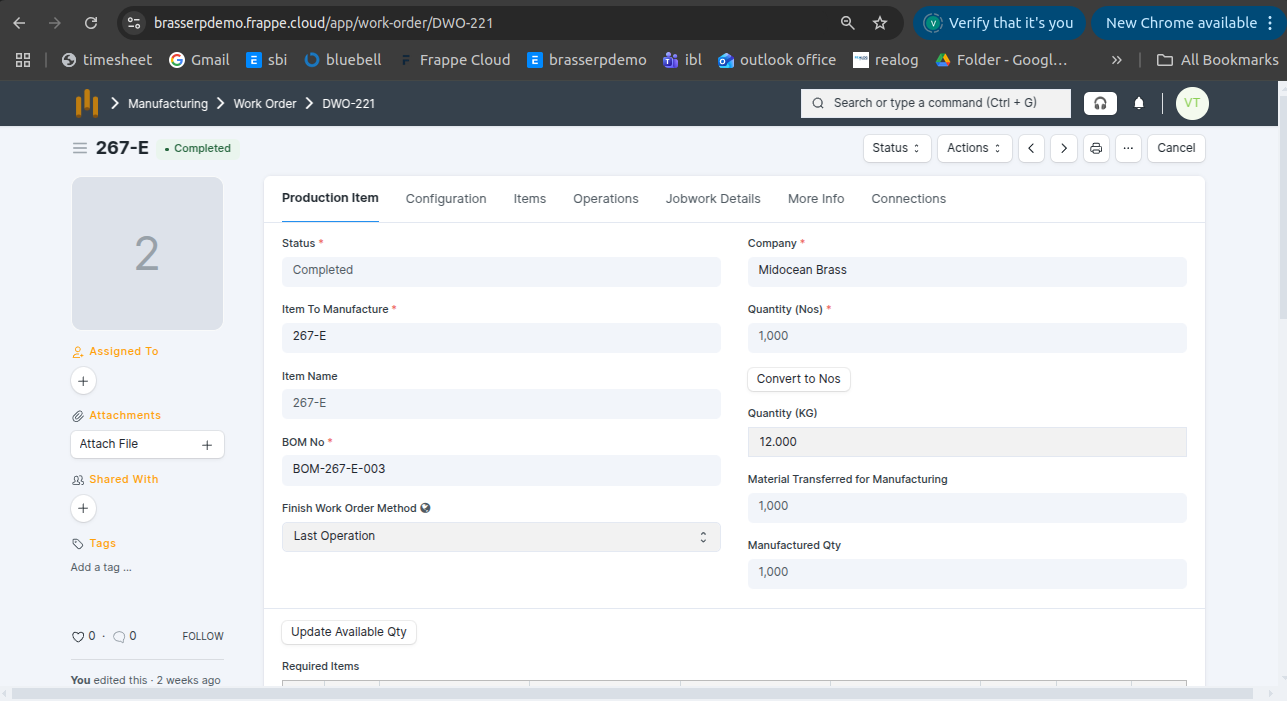 - Also, you can see below screenshot finish good qty kg and nos and scrap qty is also updated