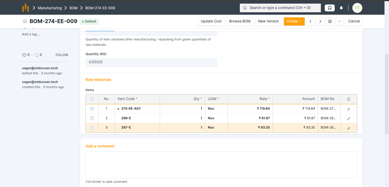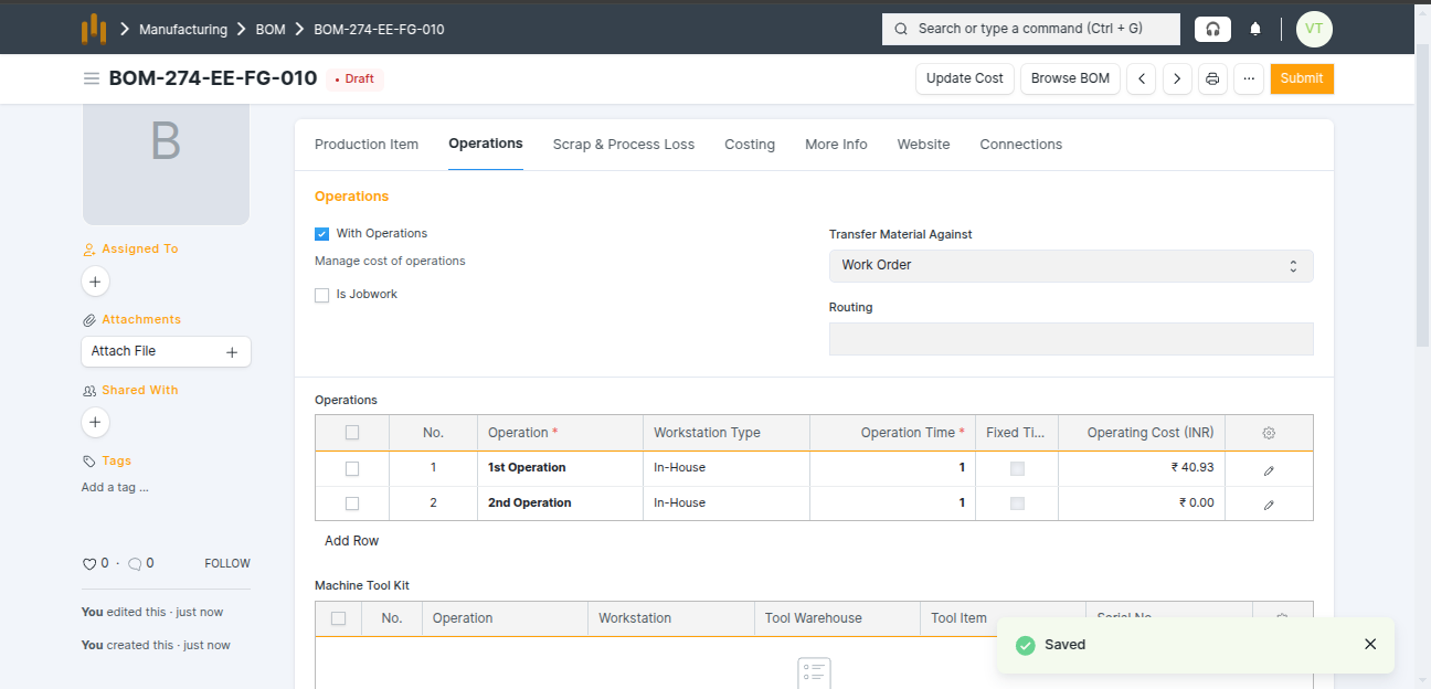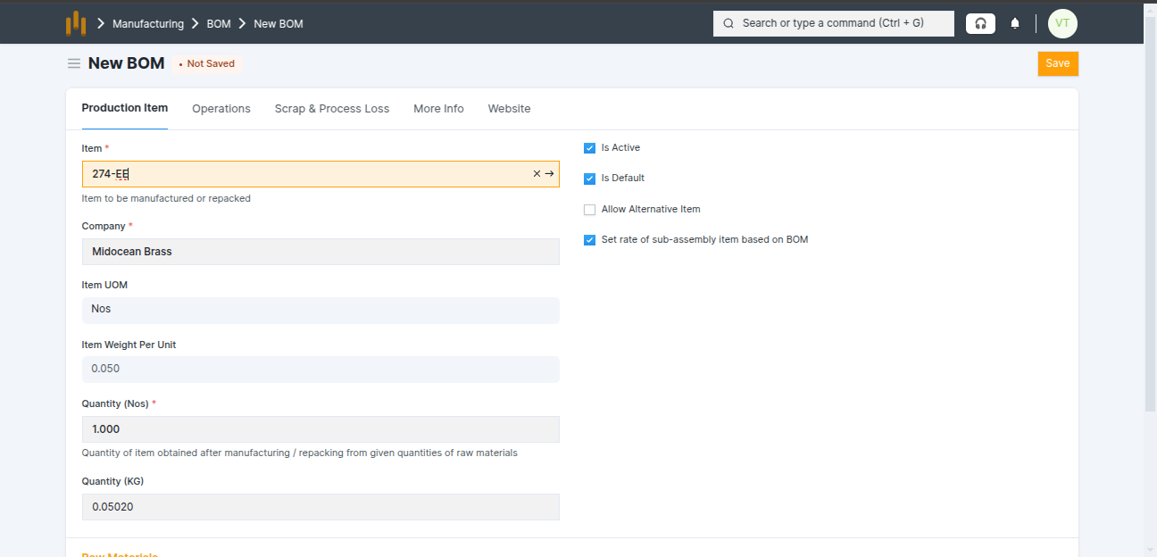 - Scrap Items in BOM - Scrap items can be added in the Scrap Items table.
