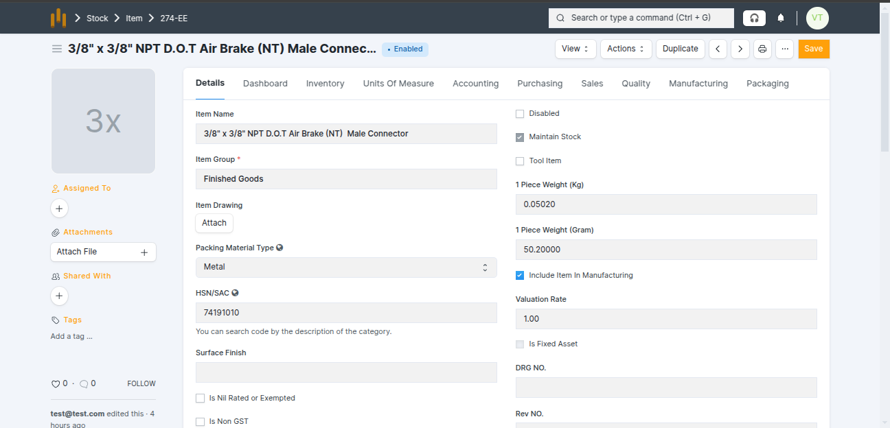 - Item Group - Select the category of the item such as Raw Material, Sub-Assembly, or Finished Good.